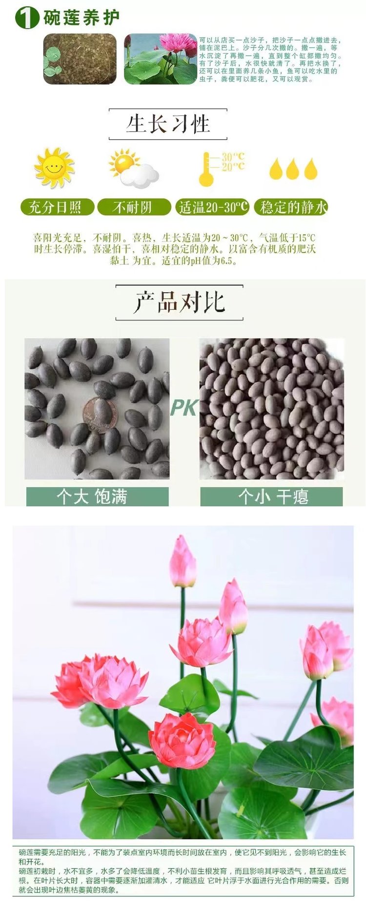 當蓮花種子發芽并長到一定高度時,可以逐漸增加光照,使其接受充足的陽光。在生長過程中,要注意保持水分的供應,但避免過度澆水。可以施用適量的肥料,以滿足蓮花生長所需的養分。